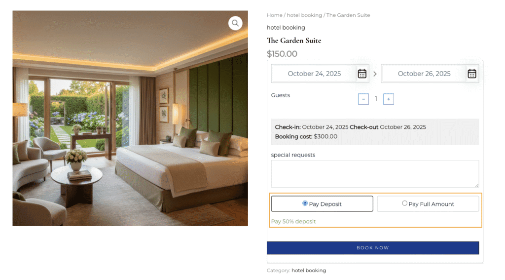 Secure and Flexible Payments with Deposits: Many guests prefer flexibility when booking stays. With the PH Deposits plugin for WooCommerce, hotels can offer customers the option to pay a partial deposit upfront and the remaining balance later. This builds trust, encourages more bookings, and improves cash flow without manual intervention.
